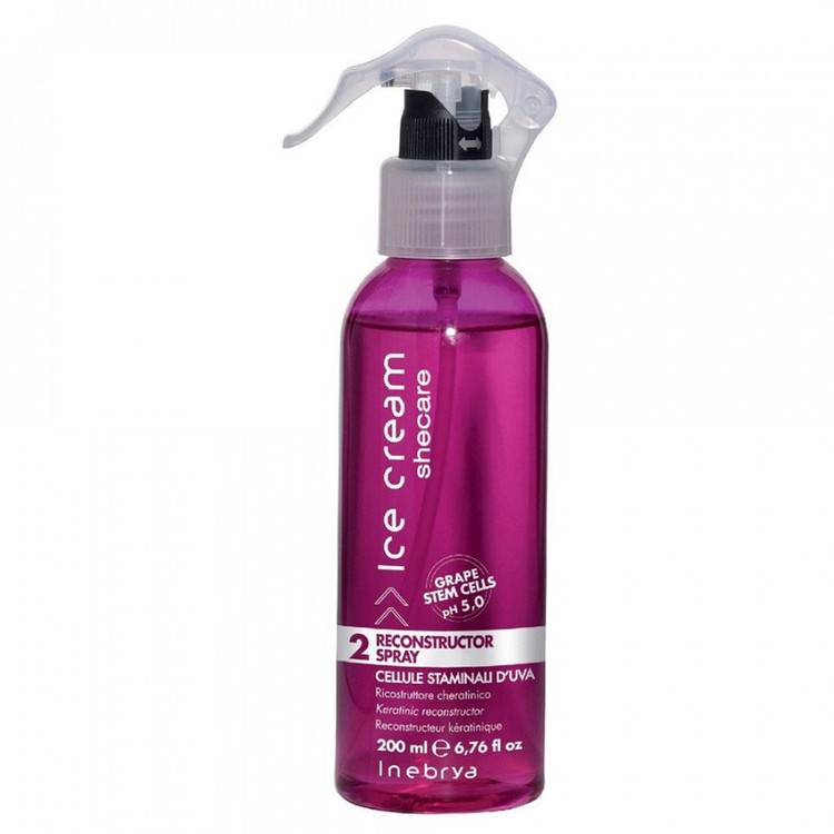 اسپری ترمیم و بازسازی کننده آیس کریم مدل Shecare ، بازسازی کننده کراتین همراه با عصاره انگور و فاقد سولفات،نمک و پارابن که مناسب برای موهای خشک،آسیب دیده و موهایی که دربرابر گرمای اتو و سشوار آسیب دیده اند .با استفاده از این اسپری نتایجی مانند بازسازی کننده و ترمیم کننده پروتئین و کورتکس مو که حجم و قدرت خود را مجددا بر می گرداند خواهید دید.با استفاده از این اسپری میتوان از رنگ مو نیز محافظت کرد. با یکبار مصرف 40% از موهای شما ترمیم و بازسازی می شود