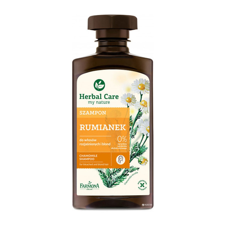 شامپو هربال کر فارمونا حاوی بابونه محصولی از برند لهستانی فارمونا است. این محصول، شامپو برای موهای سفید شده و بلوند است که تمامی آلودگی ها را بدون ایجاد آسیب از روی مو پاک می کند. عصاره بابونه موجود در این شامپو، باعث روشنایی و درخشش موها می گردد از این رو استفاده از این شامپو برای موهای روشن و بلوند مناسب است. شامپو بابونه، علاوه بر درخشش مو به کاهش ریزش مو نیز کمک شایانی می نماید. عصاره بابونه خاصیت مرطوب کنندگی دارد و از خارش پوست سر نیز جلوگیری می کند.